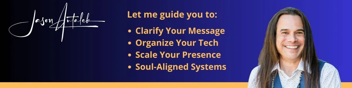 Jason Antalek supports creators, speakers, and conscious entrepreneurs in clarifying their message, aligning their tech, and showing up with presence—through soul-aligned systems and applied intelligence.